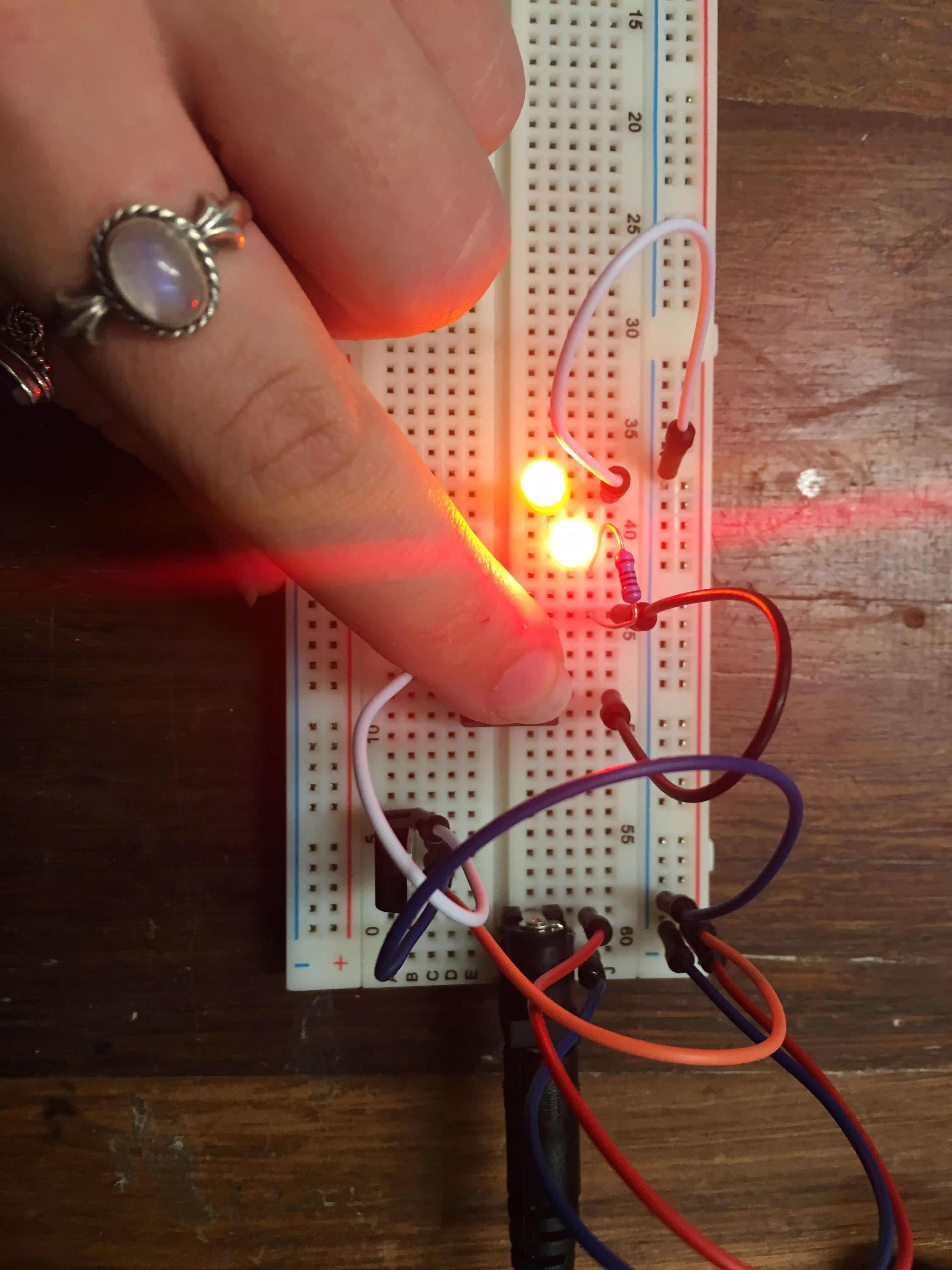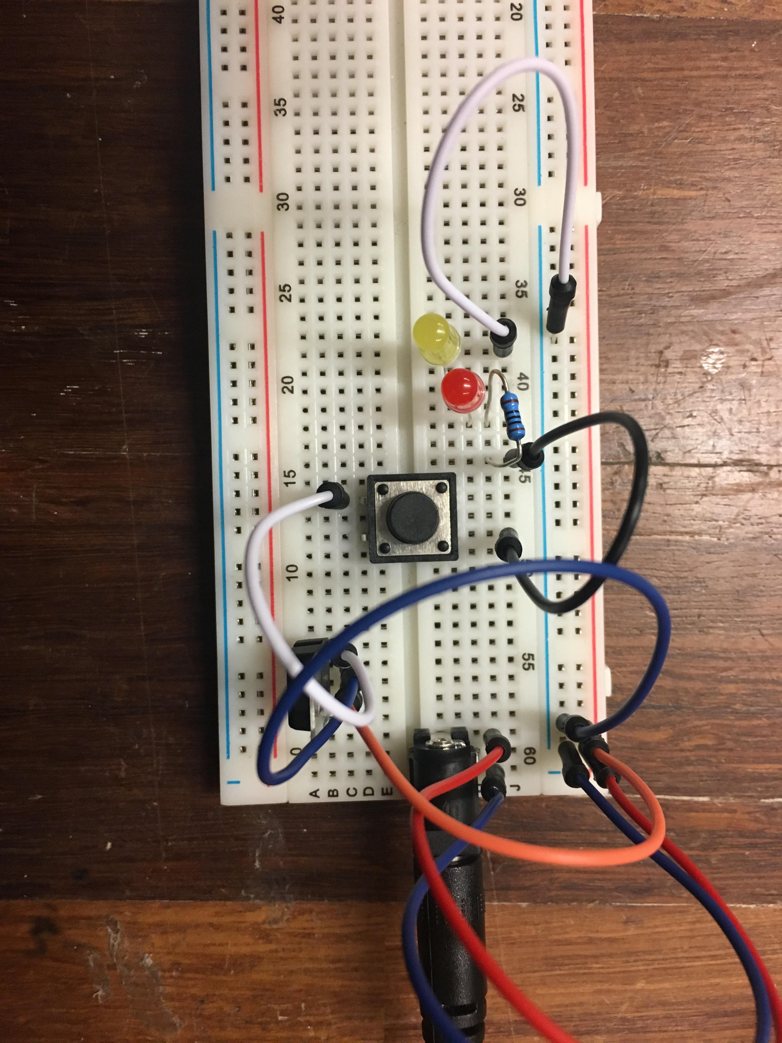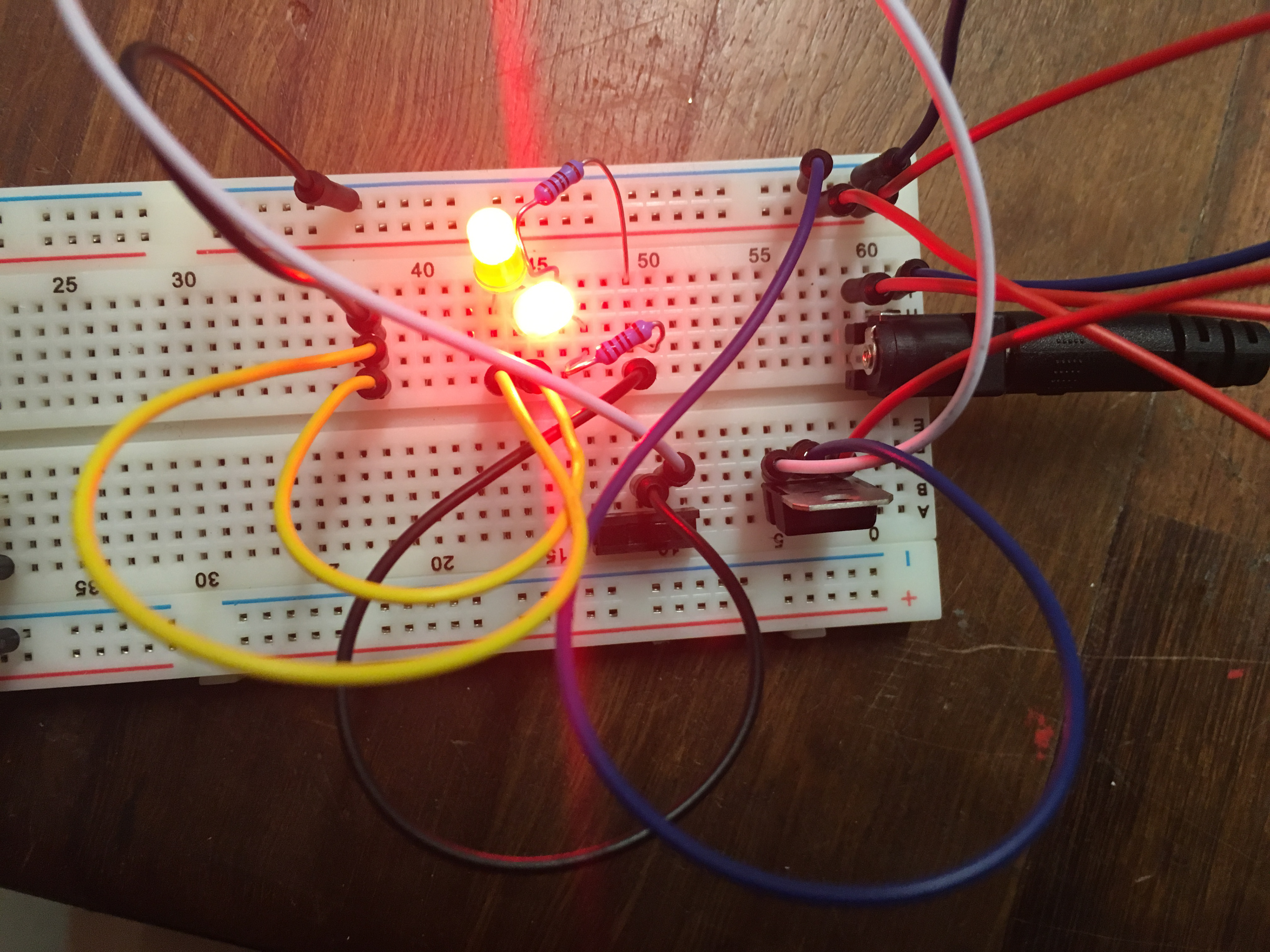 The first step in this lab was to create two basic circuits, using LEDs and switches.