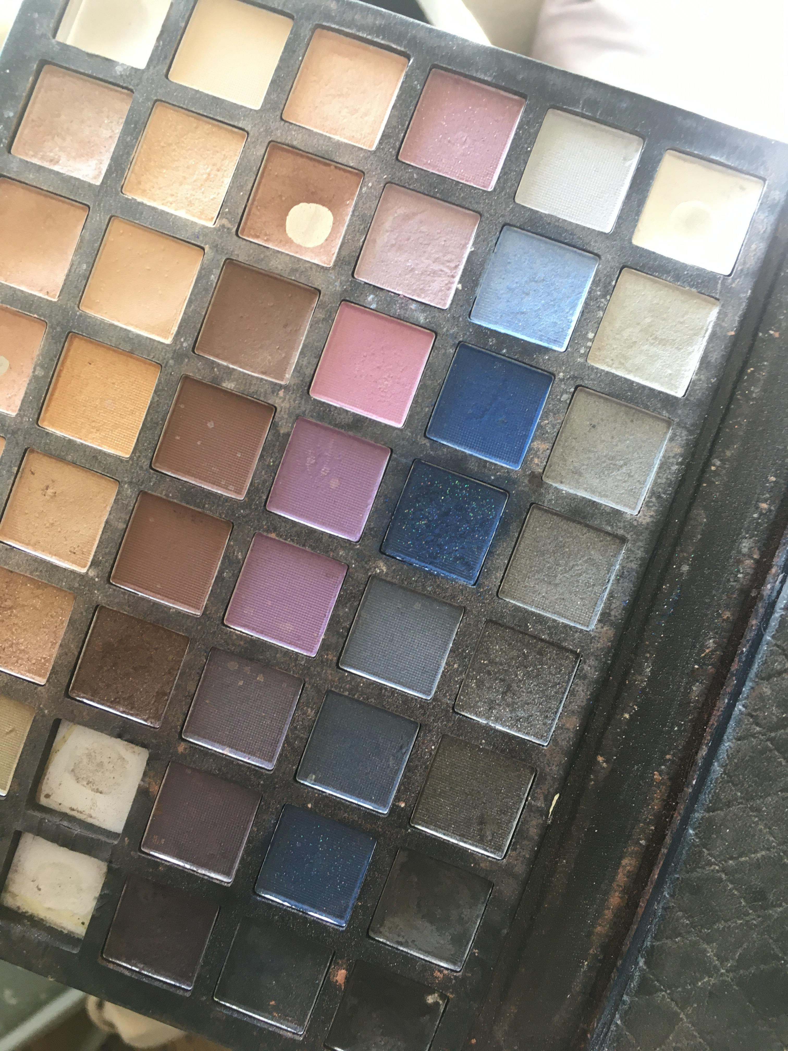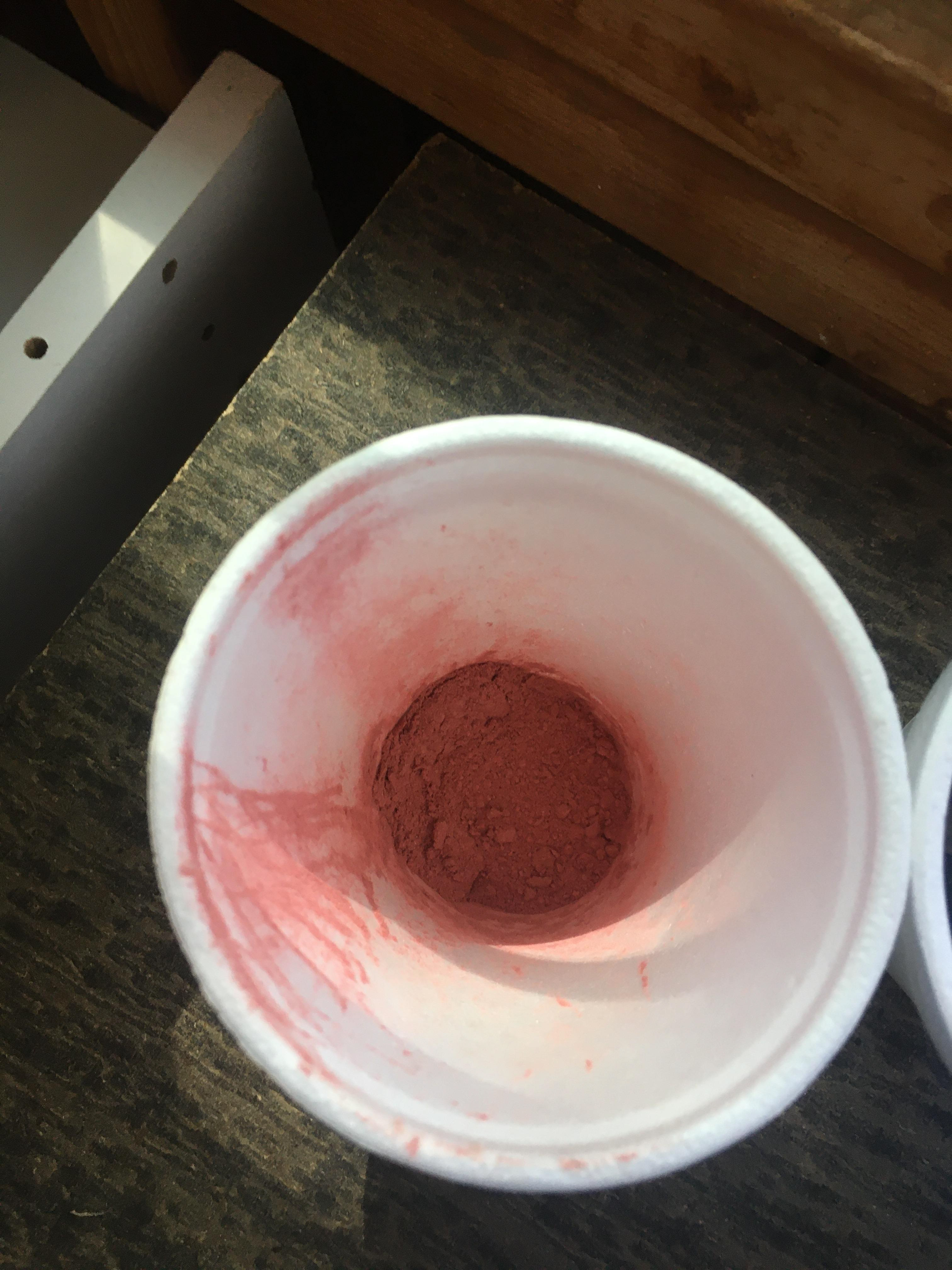 I wanted to color the epoxy so that it would stand out from the rest of the pottery. I didn't have any resin dye or mica powder, so I had to get creative. I also crushed up some old eyeshadow palettes to swirl in as mica powder to add shine and depth to the epoxy. I chose warm pink, blush and golden tones for this to match the warm reddish-orange of the terra cotta pots.
