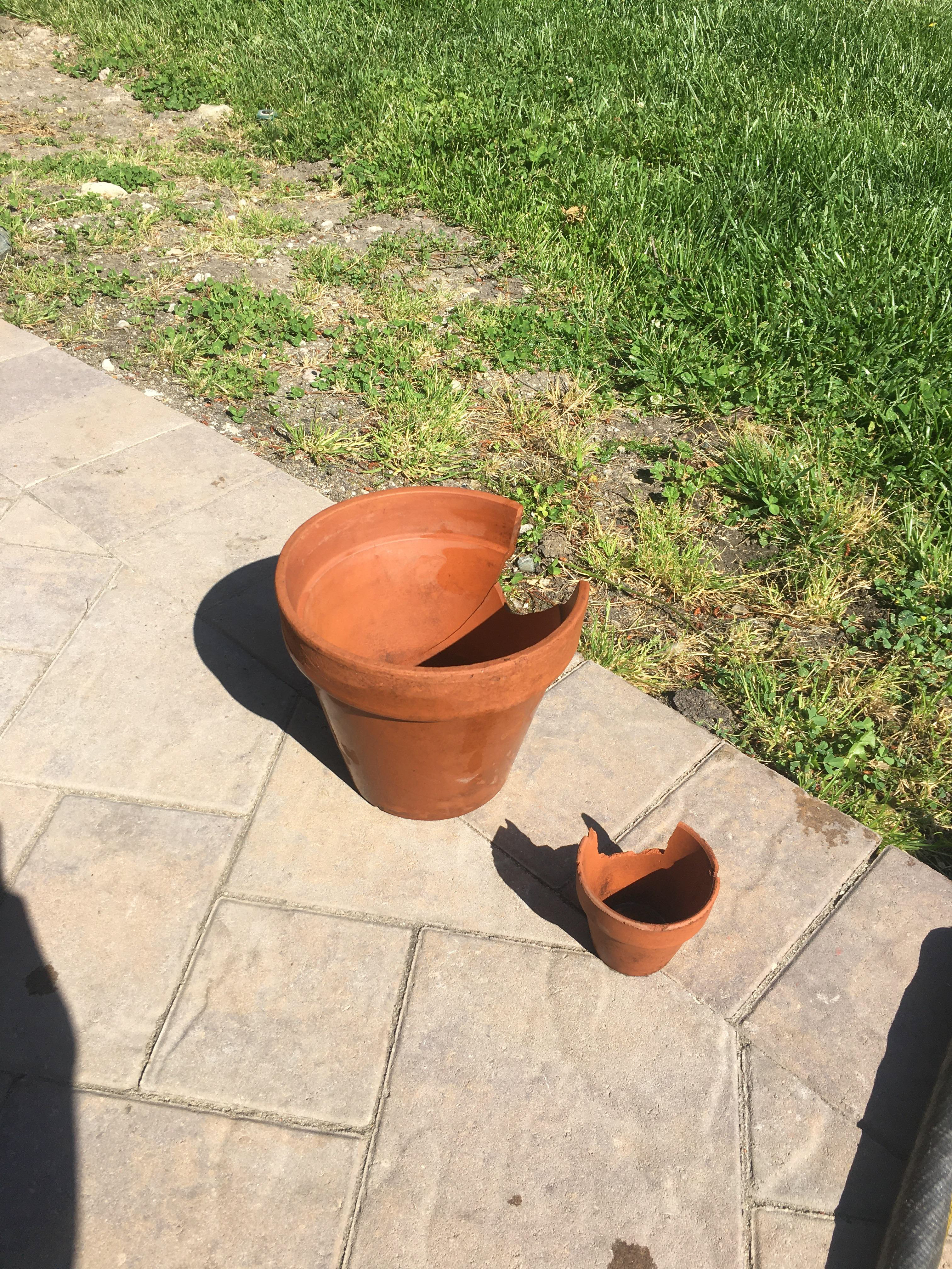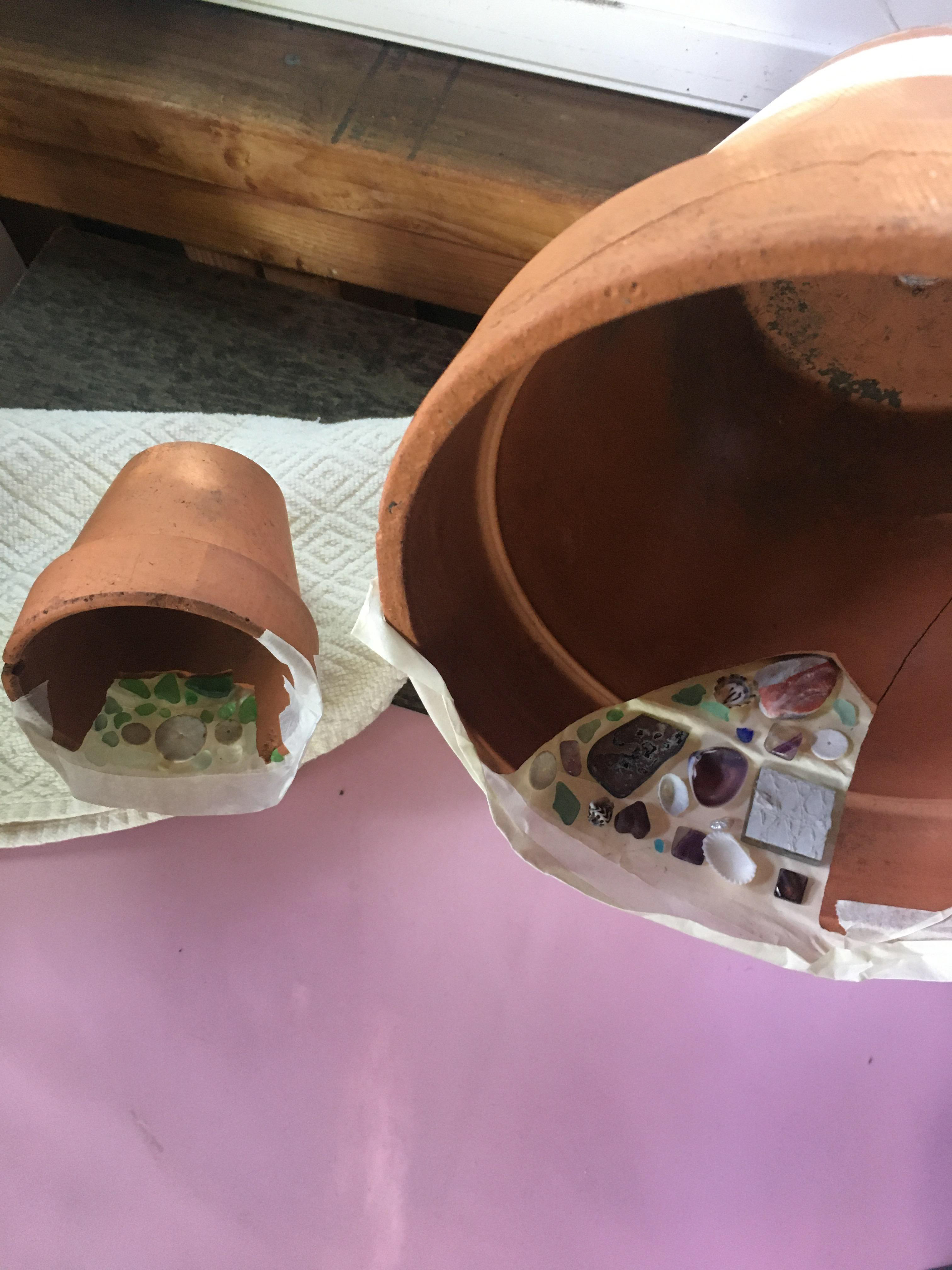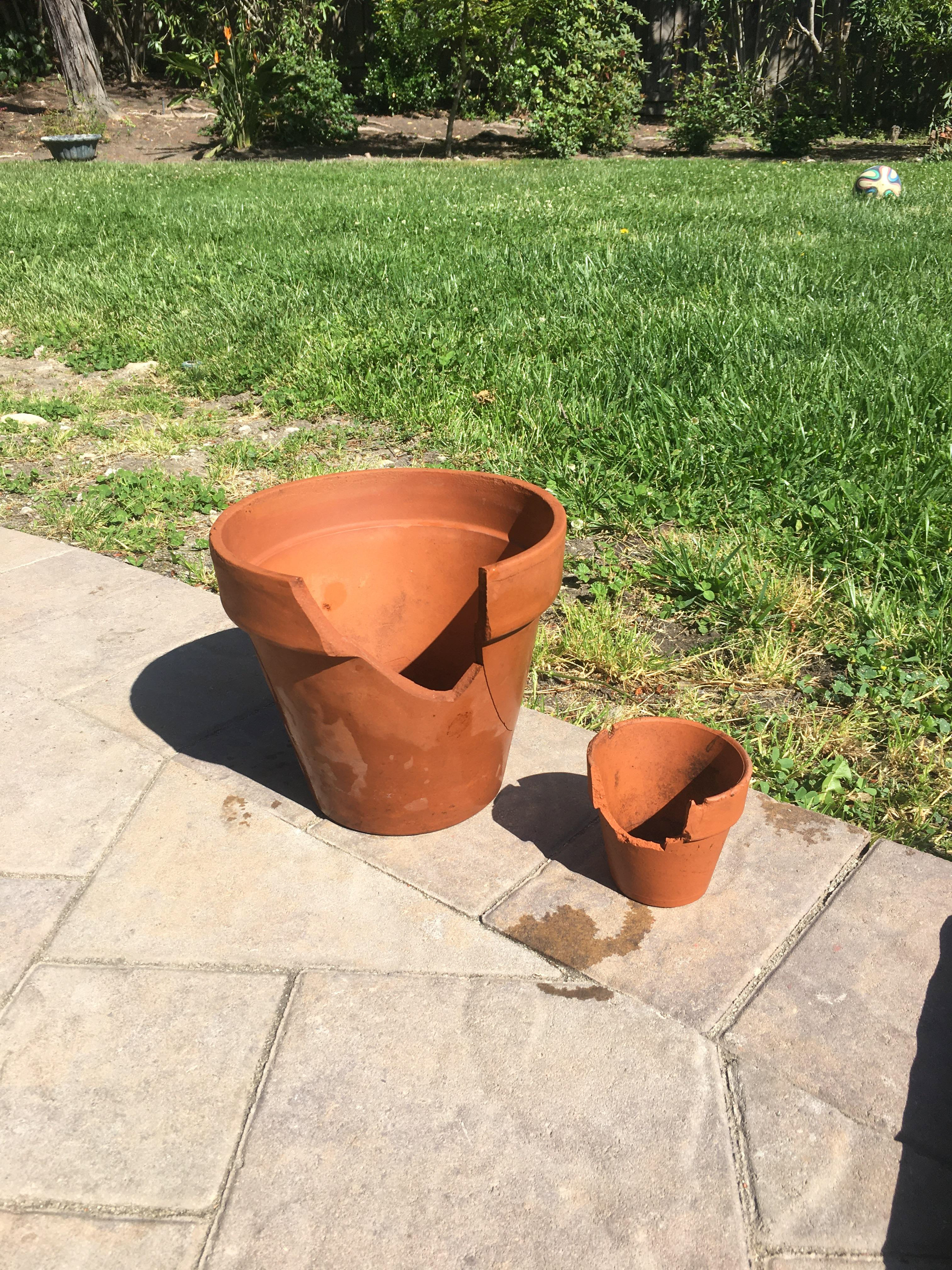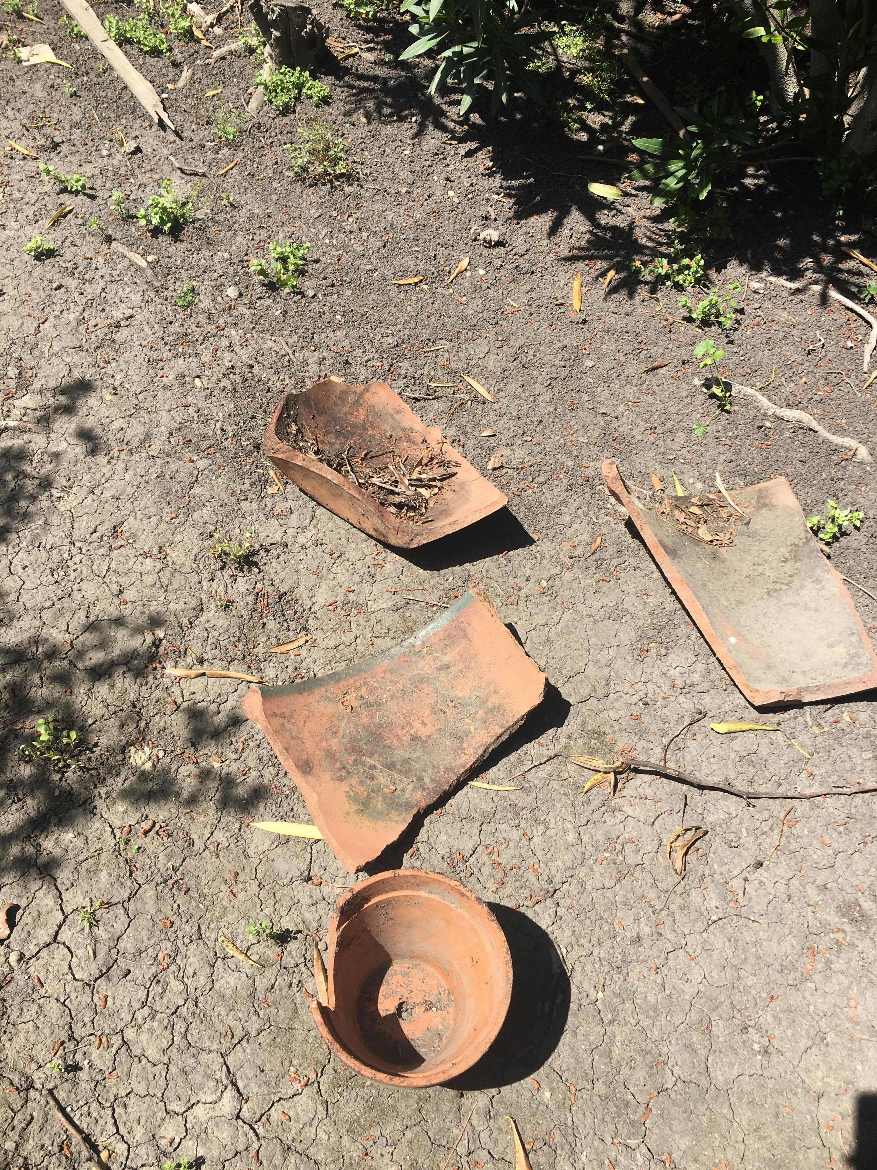 My next idea is to use creative fabrication to fix up broken pots and planters we have, I found some old, large, ceramic shards, and I want to rebuild them into pots that look nothing like the originals.