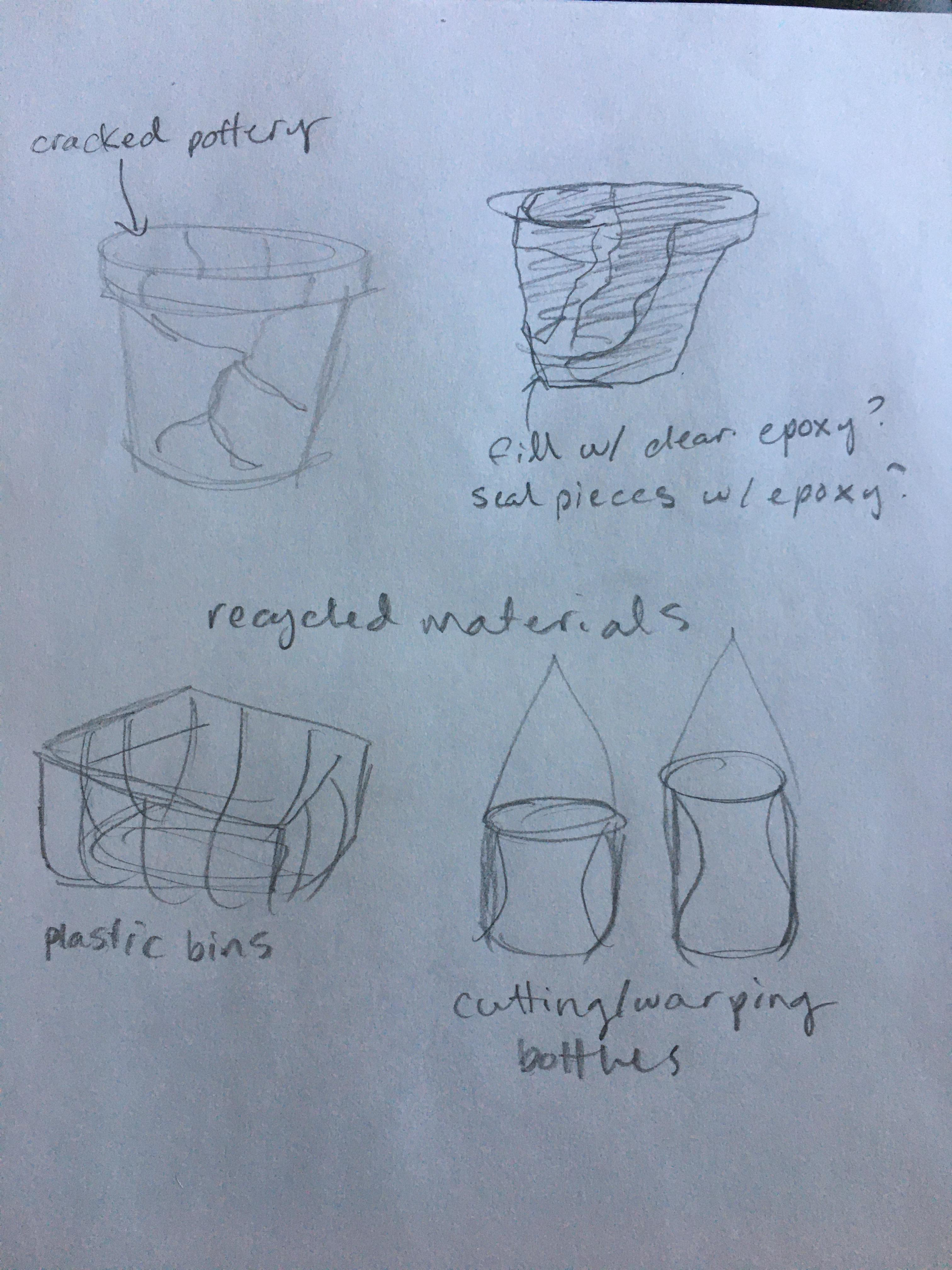 For my final, I want to take advantage of material that I already have to fill a current need of mine. I want to create alternative planters, very different than typical pots. I have a lot of recycled scrap material, as well as some old broken planters I want to fix up.