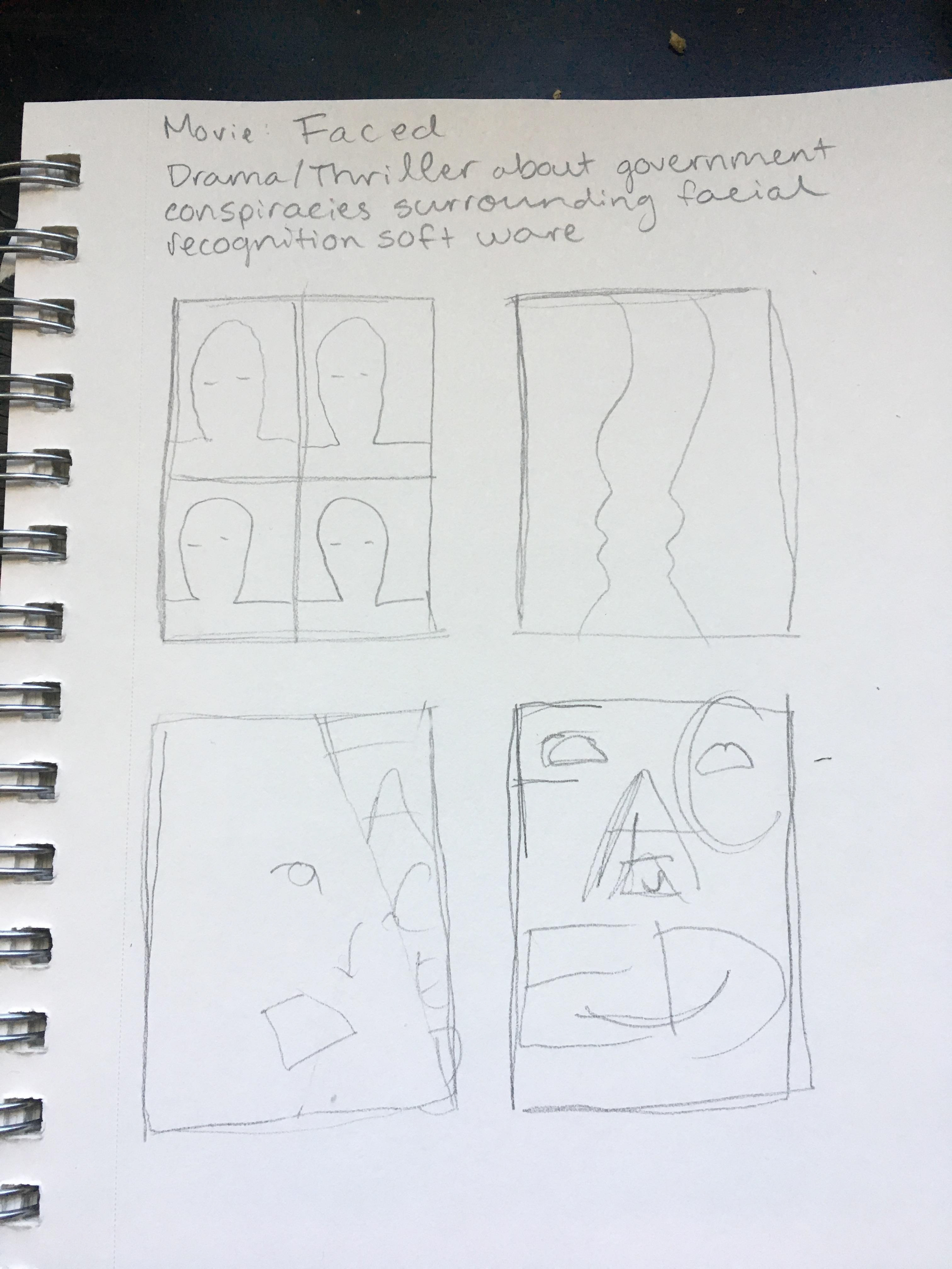 With this movie plot, I definitely wanted to add at least one face to the poster. I worked around with concepts of multiple faces, but felt like I couldn't fully meet the negative space requirement while also fully conveying to emotion of the movie. I decided to use a single face because I felt like it gave me more room to add emotions to that face, while still using mostly negative space.